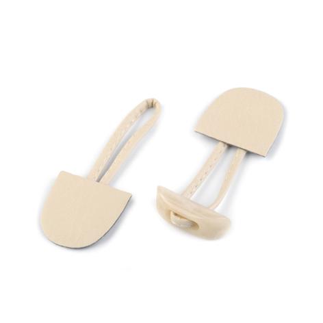 2 Schlaufen, 1 Knopf und 2 Lederstücke.